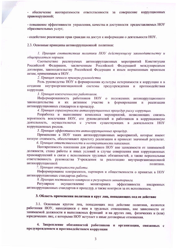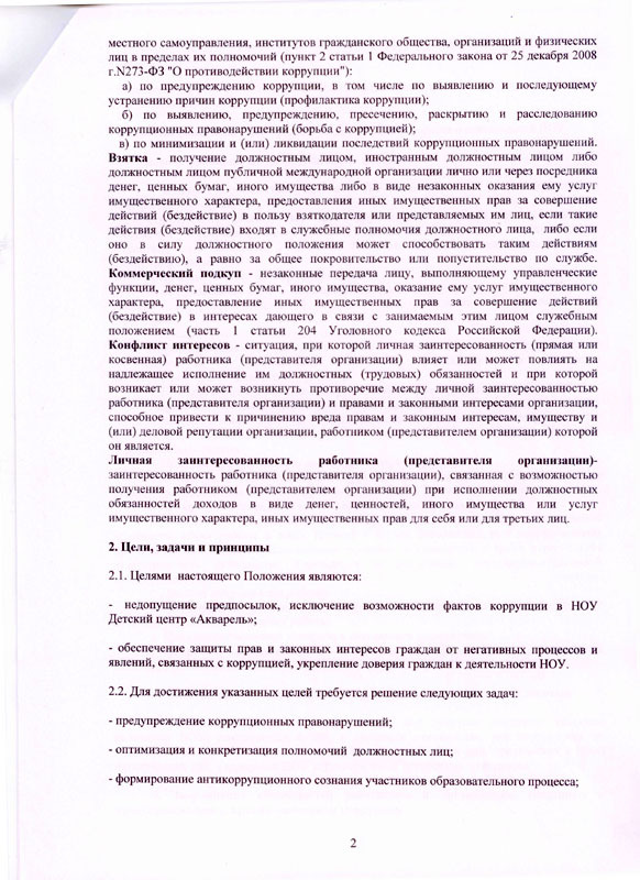 Положение об антикоррупционной политике в ЧДОУ Детский Сад "Акварель"